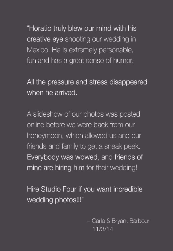 "Horatio and Studio Four Photography bring a unique joy and charm to their work — some of our favorite published photos have come from their weddings." — Martina Raynott, Southern Weddings Magazine
